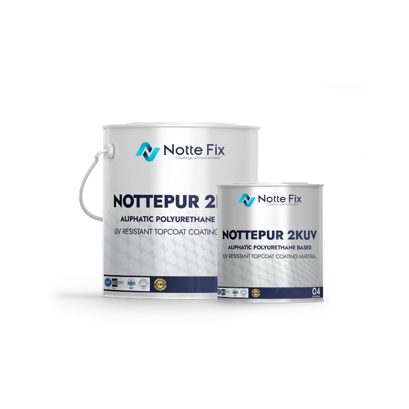 NOTTEPUR 2KUV is a polyurethane-based, UV-resistant liquid topcoat. It creates a durable, elastic film that adheres to various surfaces. With excellent mechanical and chemical properties, it offers high strength, tear resistance, and abrasion resistance. The film allows breathability, prevents moisture buildup, and bridges shrinkage cracks.